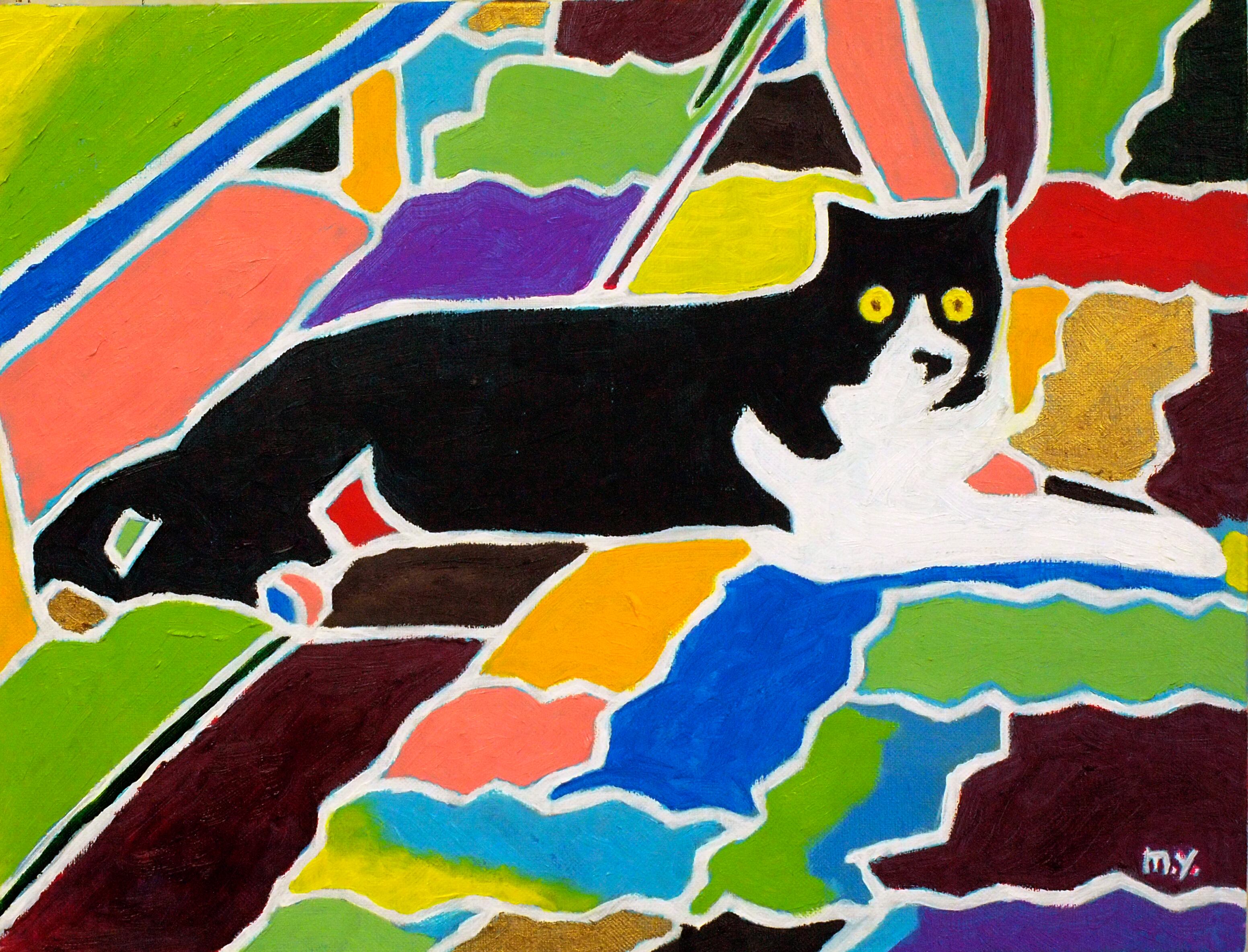 油彩画を複写し、キャンバス地にジークレープリントしたものを木製パネル貼り。