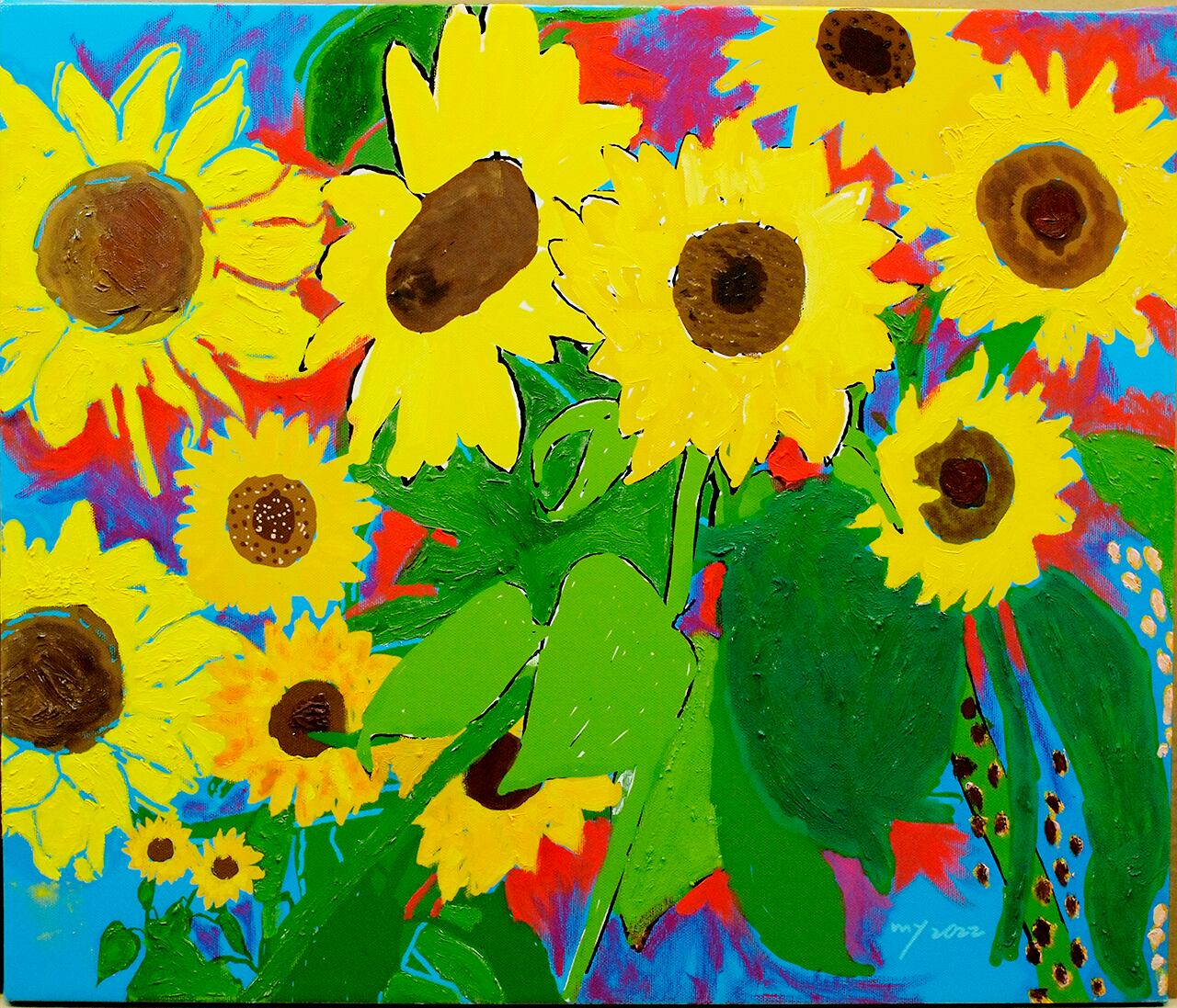 淡路島でスケッチした向日葵のドローイングをデジタルで彩色し、