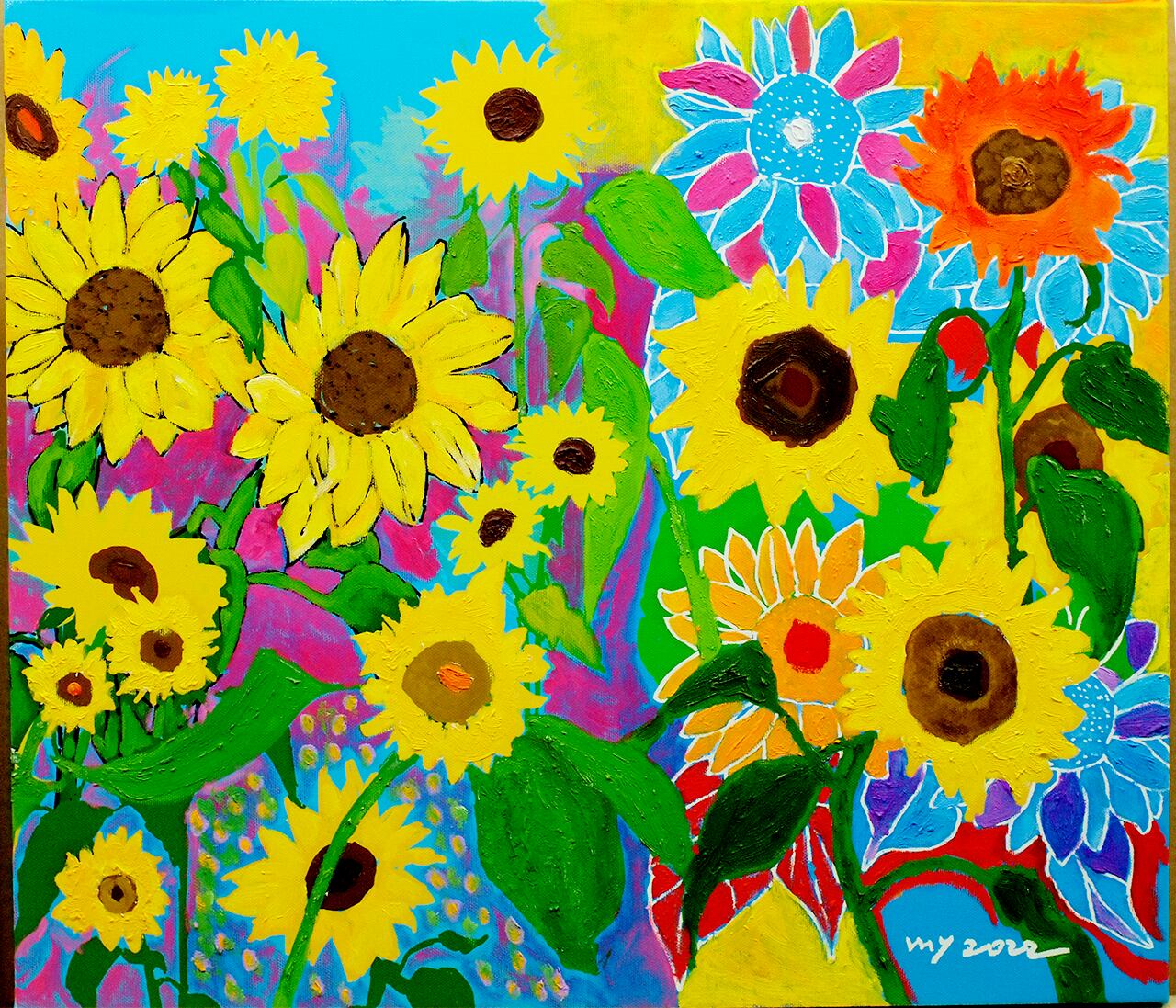 淡路島でスケッチした向日葵のドローイングをデジタルで彩色し、